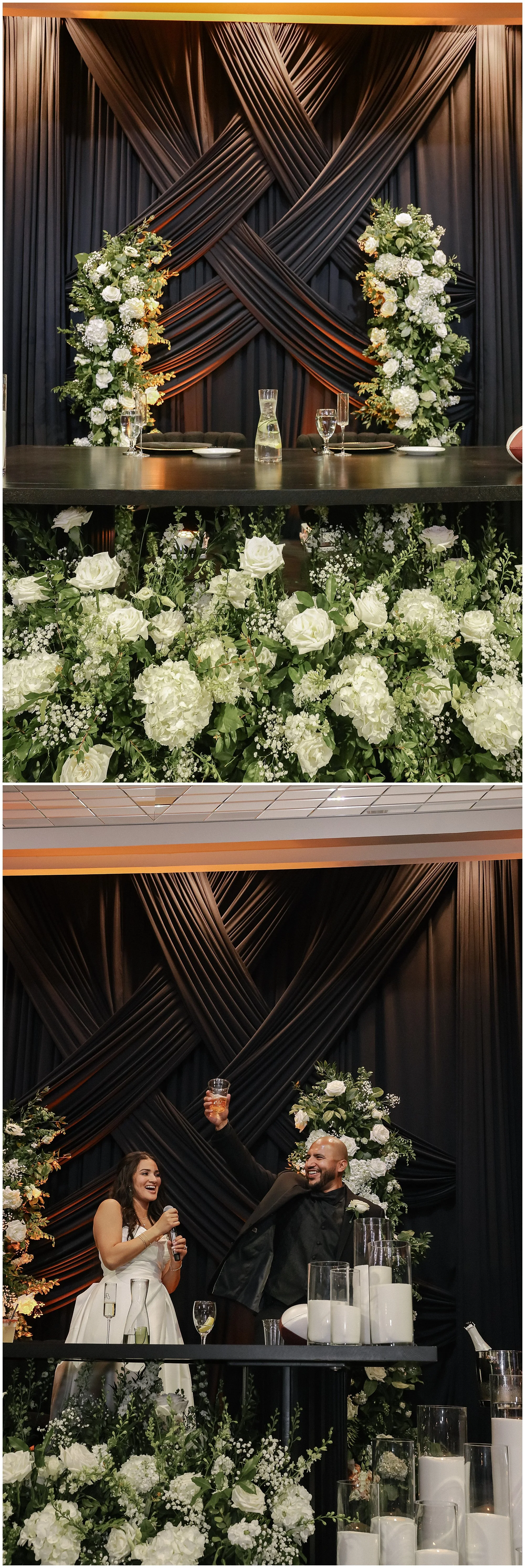 The moment guests walked into Marinaj Banquets, they were welcomed by the dramatic and elegant black and gold wedding décor. The rich tones created such a timeless, luxurious atmosphere — a photographer's dream. From the bridal party style to the reception details, everything shimmered with sophistication and sparkle.
