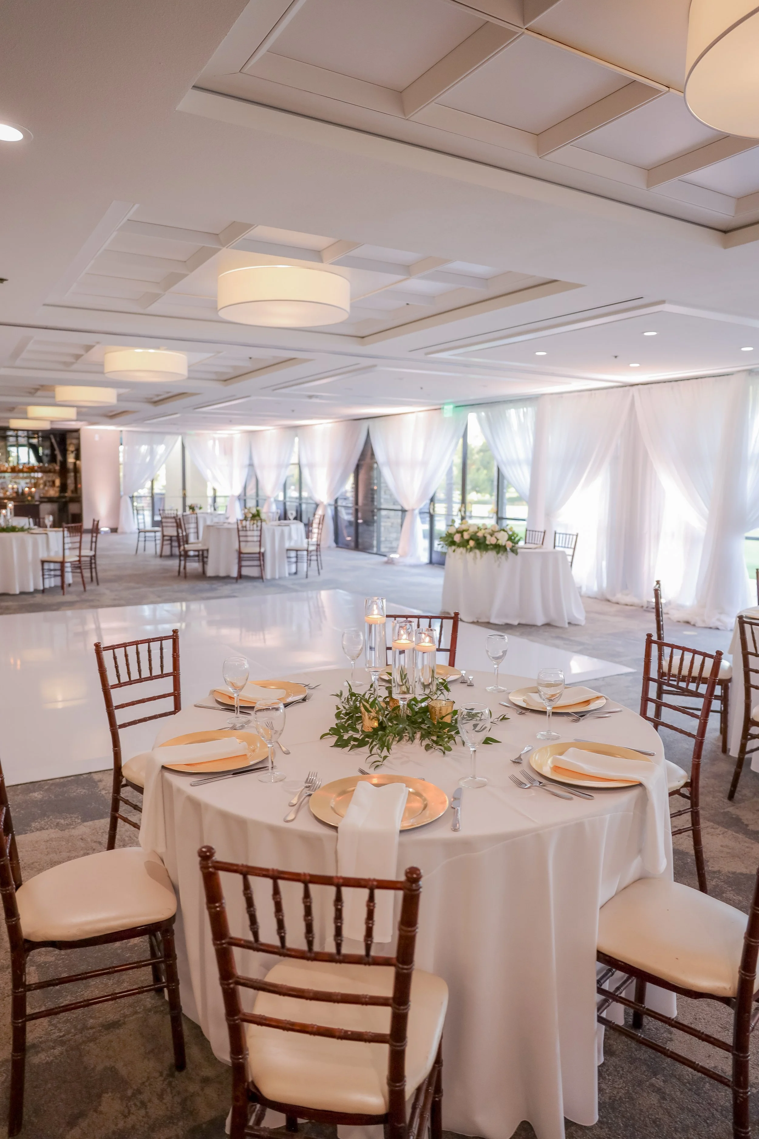 Candid and posed shots of guests, décor, venue, and entertainment